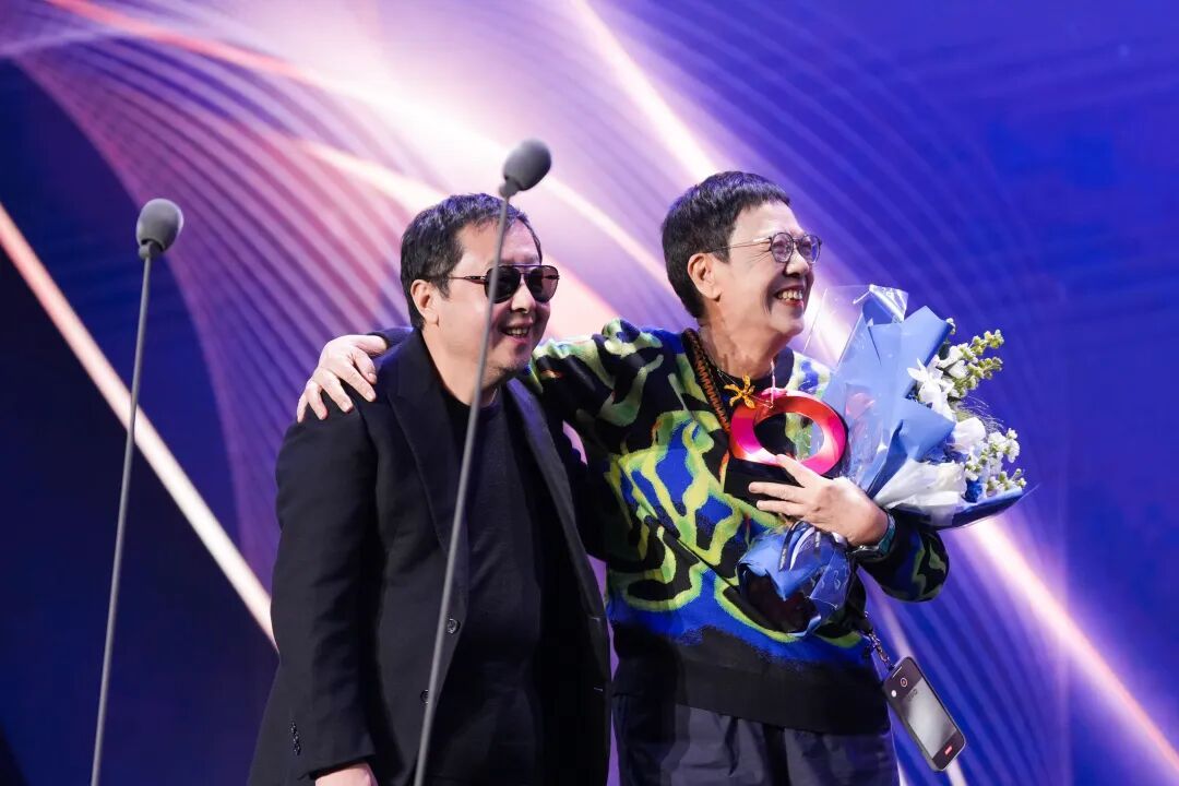 许鞍华把手机挎在肩上,风风火火上台,向两位致敬嘉宾连连鞠躬。“除了我年纪大一点以外,没有什么比他们强的地方,所以我觉得非常荣幸。”她说。