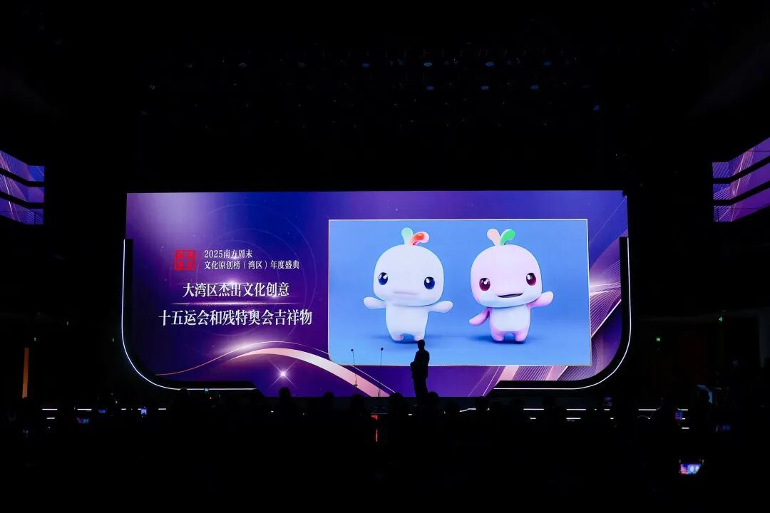 在“湾区特别致敬”单元,“大湾区杰出文化创意”荣誉授予十五运会和残特奥会吉祥物“喜洋洋”和“乐融融”。它由广州美术学院视觉艺术设计学院院长刘平云所负责的团队设计,以中华白海豚为原型,融合了粤港澳三地文化元素。